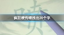 疯狂梗传是一款比较有难度的文字游戏,还有不少小伙伴还没弄清疯狂梗传喷找出20个字,本关的难度还是比较大的,相信还有很多的小伙伴们没有顺利的通关,下面小编为大家带来了相关攻略的介绍,