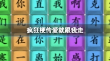 疯狂梗传是一款比较有难度的文字游戏,还有不少小伙伴还没弄清疯狂梗传爱就跟我走,本关的难度还是比较大的,相信还有很多的玩家没有顺利的通关,下面小编为大家带来了相关攻略的介绍,感兴趣的