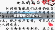疯狂梗传是一款比较有难度的文字游戏,还有不少小伙伴还没弄清疯狂梗传女王的告白,本关的难度还是比较的大的,相信还有很多的玩家没有顺利的通关,小编为大家带来了相关攻略的介绍,感兴趣的小