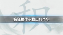 《疯狂梗传》是一款比较有难度的文字游戏,还有不少小伙伴还没弄清楚疯狂梗传积找出18个字这一关,该关的难度比较的大,相信还有很多的玩家没有顺利的通关,下面小编为大家带来了相关攻略的介