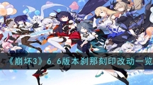 崩坏3的6.6刹那改了什么?在崩坏3中玩家可扮演炽翎、白夜执事、第六夜想曲、月下初拥、极地战刃、空之律者、原罪猎人等女武神,去抵抗崩坏的入侵。在6.6版本中,除了新角色的上线,最大