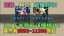 随着3.1版本的更新也有些时日了,游戏中也给玩家带来了全新的沙漠地图,其中3.1下半版本也快到来了,那么很多小伙伴会问我们可以在3.1下半版本里面可以获得多少的原石数量,那么下面就