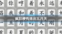 在《疯狂梗传》游戏中存在很多的关卡,本关卡“连出五月天”需要玩家将图中的字连起来成五月天的歌词,难度比较的大,相信还有很多的玩家们没有顺通关,下面我们为大家带来了一份详细的攻略供大