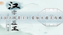 汉字找茬王爱如火怎么过?这首歌是最近比较火的网络歌曲,如果你不知道歌词的话就往下看看吧,下面是是本站带来的汉字找茬王爱如火通关攻略,可能会难倒很多小伙伴,下面就有小编带大家一起来看