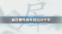 在《疯狂梗传》游戏中存在大量的关卡供玩家们玩,其中找字类的游戏难度比较的高,本关找字“房车”需要玩家们在限制的时间内找到图中存在的18个字,相信还有很多人没有全部找到,下面我们为大