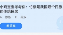 《支付宝》8.15蚂蚁庄园-竹楼是我国哪个民族的传统民居?