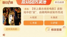 《淘宝》大赢家10月20日问答-皮影戏中的“皮”,由哪两种皮制作而成?