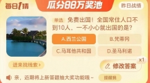 《淘宝》大赢家9月8日问答-全国常住人口不到10人,一不小心就出国的是?