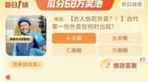 《淘宝》大赢家11月12日:古代第一份外卖在何时出现?