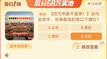 《淘宝》大赢家11月14日:古代后宫中,年俸最高的是以下哪位?