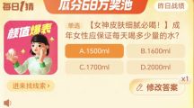 《淘宝》大赢家11月8问答-成年女性应保证每天喝多少量的水?