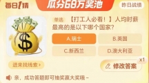 《淘宝》大赢家10月13日问答-人均时薪最高的是以下哪个国家?