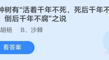 《支付宝》8.24蚂蚁庄园-哪种树有活着千年不死,死后千年不倒,倒后千年不腐”之说?