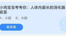 《支付宝》8.18蚂蚁庄园-人体内最长的消化器官是?